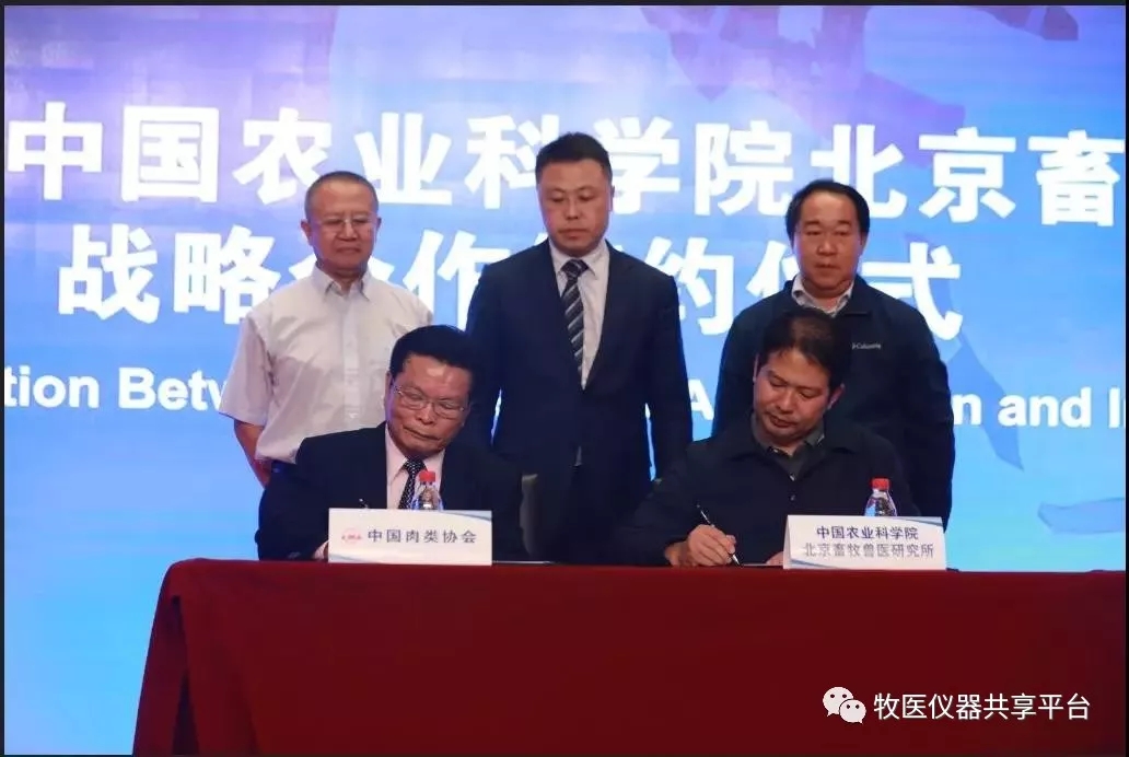 为深入贯彻国家创新驱动发展战略,落实健康中国战略,大力提升畜牧业科技创新能力,加快成果转化与应用,推进科研平台共享,强化技术服务与支撑,2018年9月20日,在由中国肉类协会主办的“金锣”-2018肉类产业发展大会上,中国农业科学院北京畜牧兽医研究所(简称“牧医所”)与中国肉类协会签署了战略合作协议。